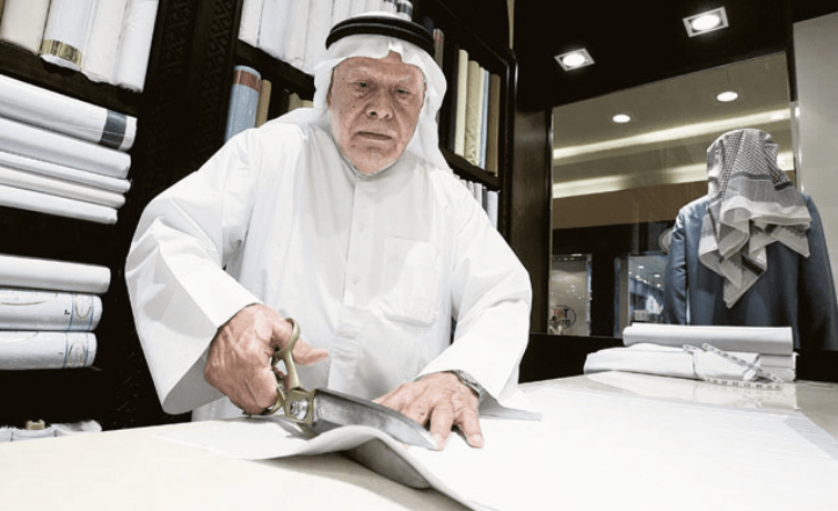 بمكينة خياطة كانت الأولى في المنطقة، وحيزٍ صغيرٍ في محله بمنطقة الراس بدبي، بدء عبدالرحمن الشافعي المدني رحلة احتراف مهنة خياطة الملابس الرجالية في نهاية خمسينيات القرن الماضي. حينها، كان هو من يأخذ المقاس ويقص الأقمشة ويخيطها ويسلمها لزبائنه جاهزة، الذين كانوا جميعاً من سكان إمارة دبي وضواحيها.